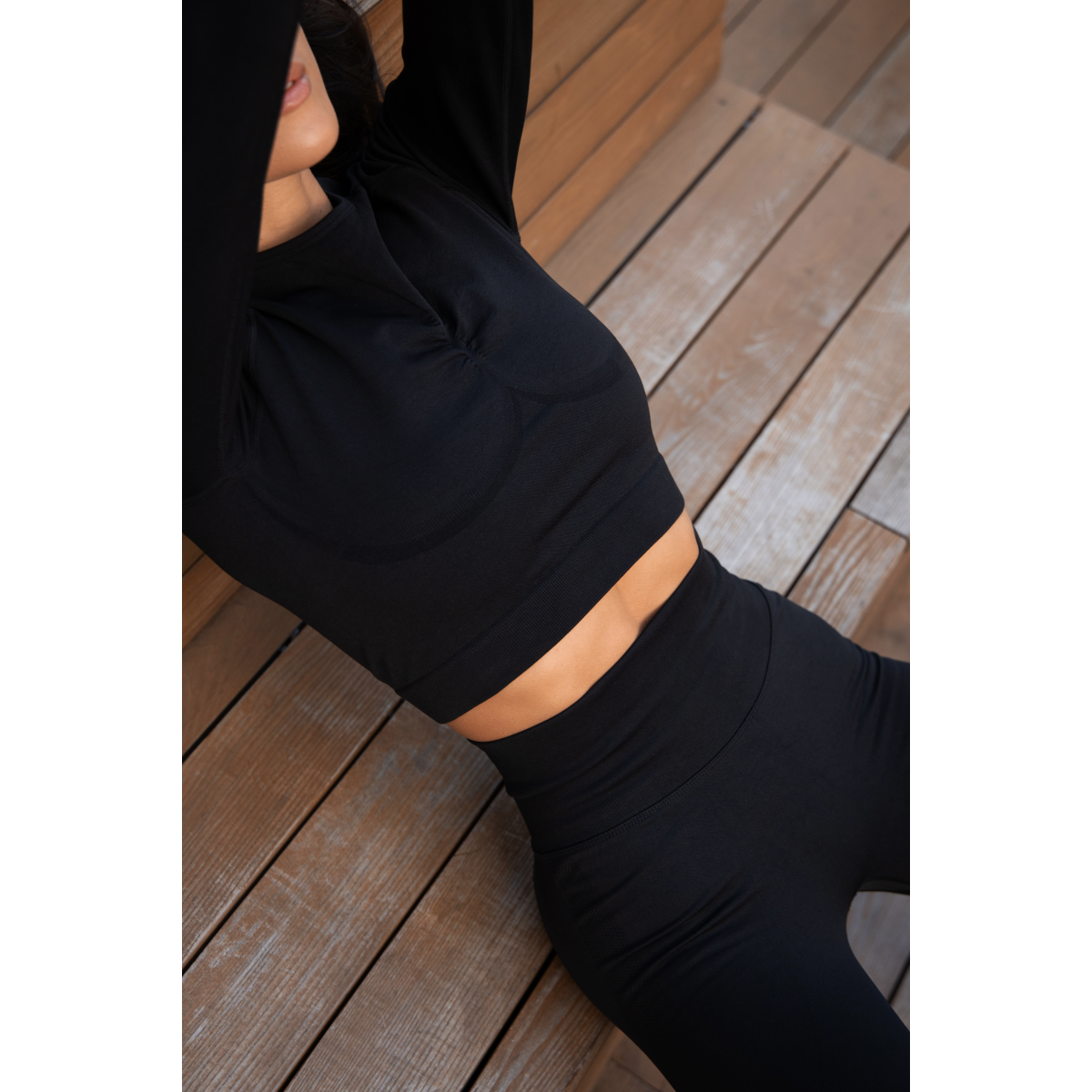 Безшовний комплект спортивний лосини з подвійним push up і топ лонгслів без чашок чорний Rise