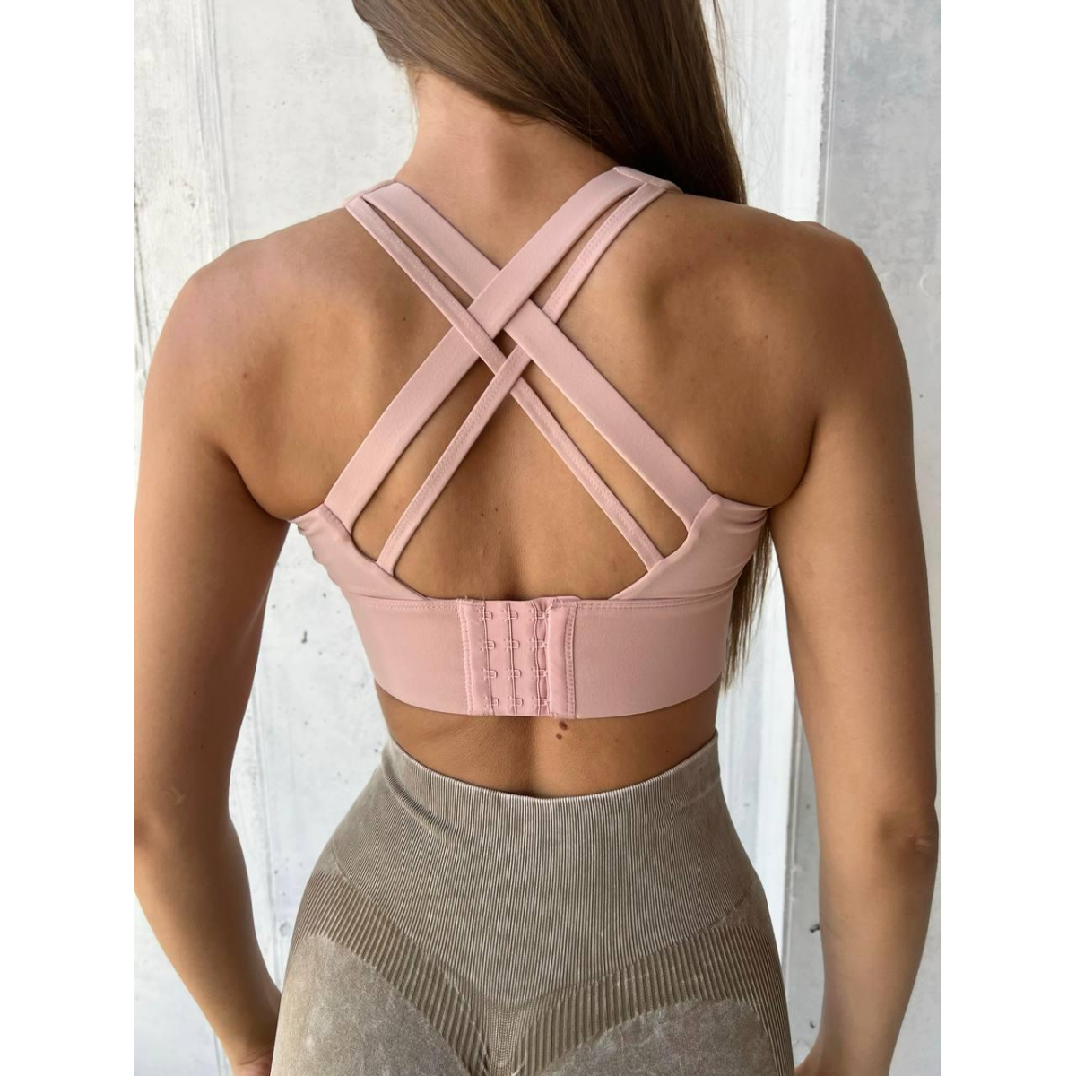 Спортивний топ бюстгальтер на застібках пудровий топ бра