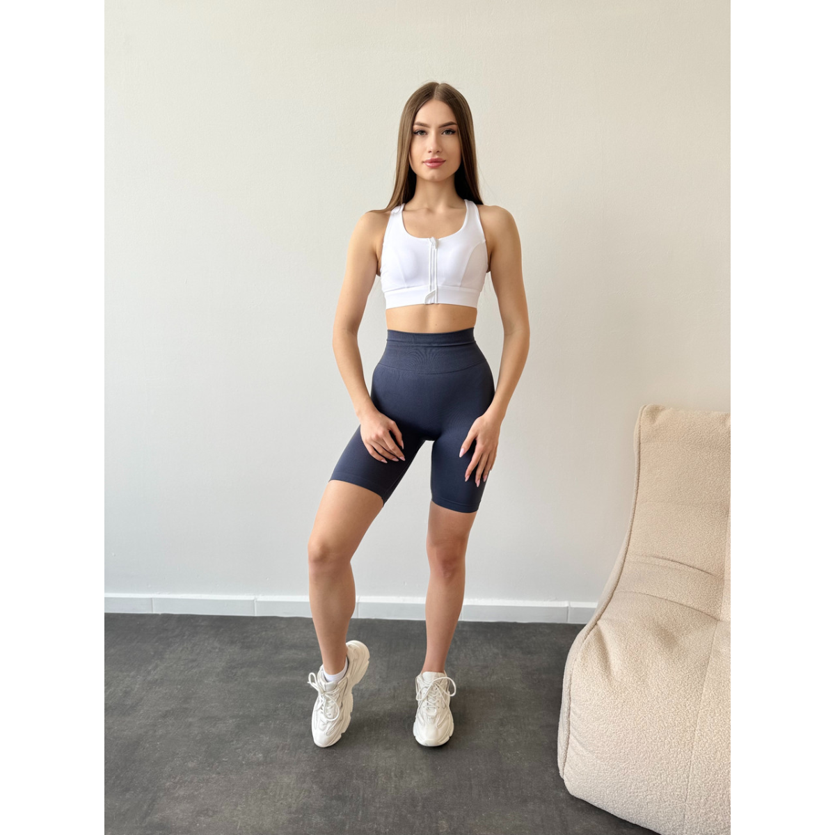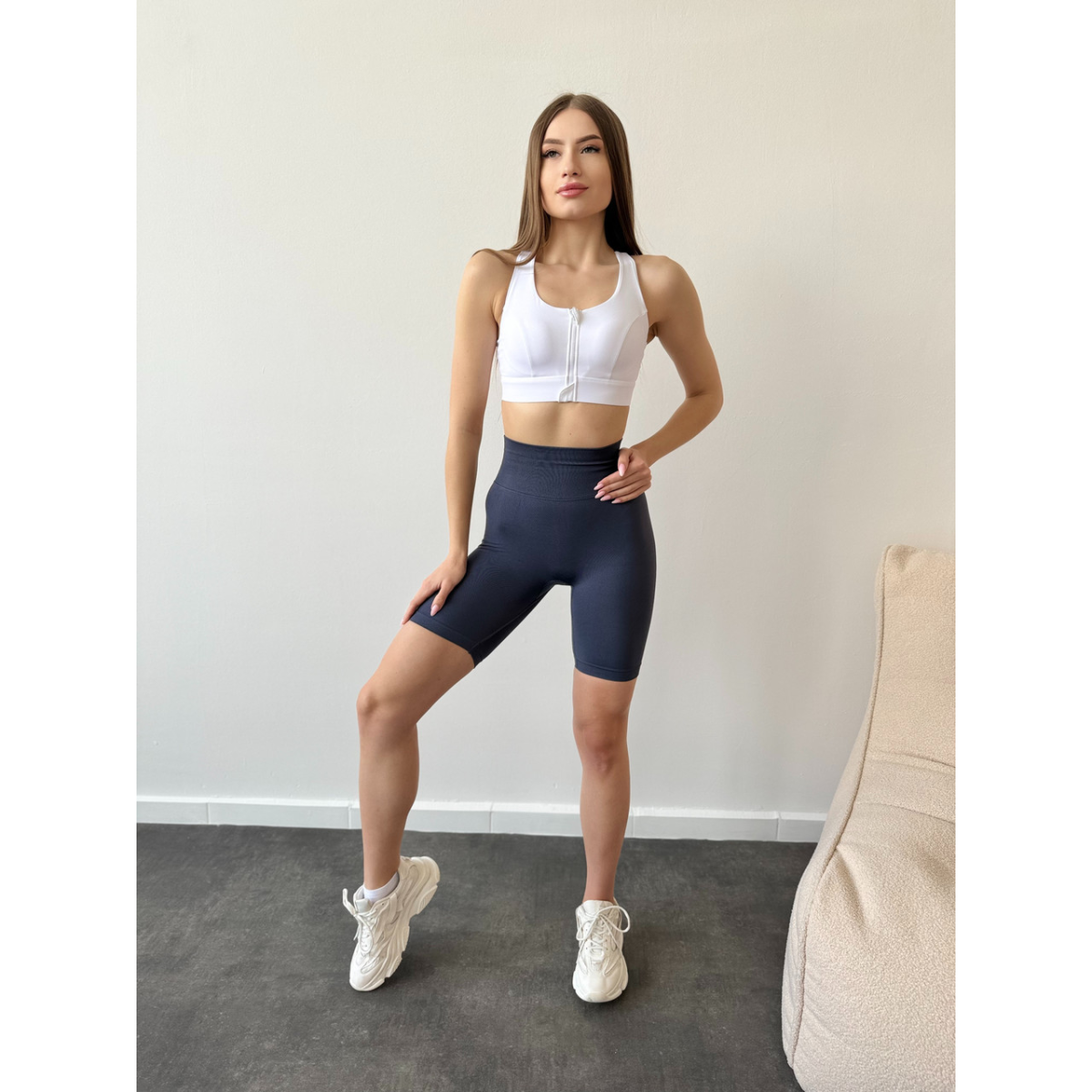 Спортивний базовий кроп топ на змійці спереду білий топ бра