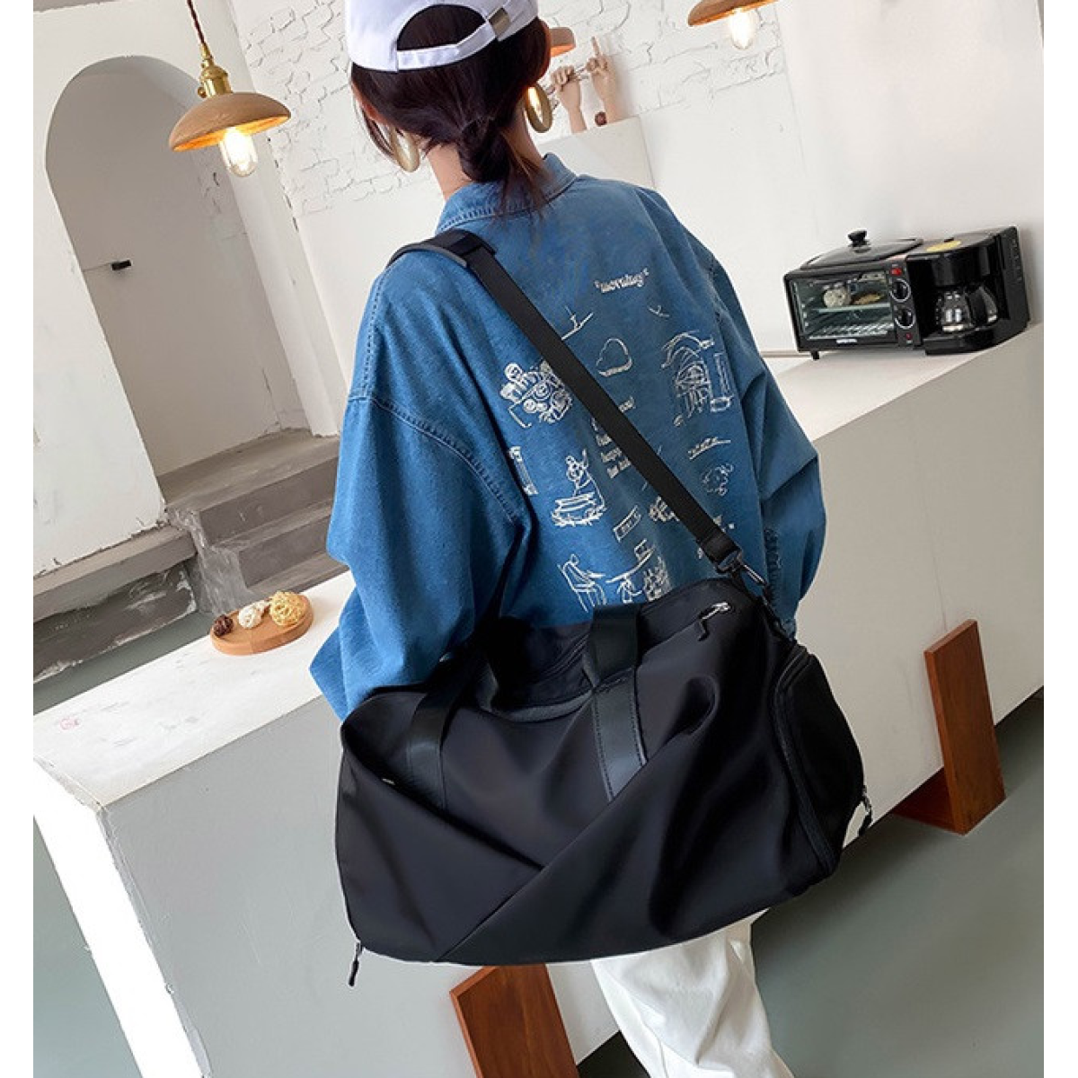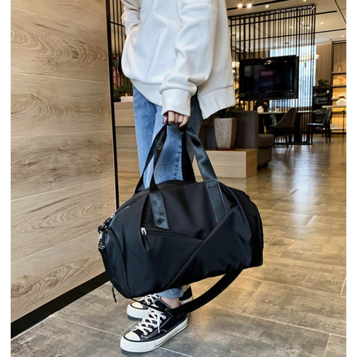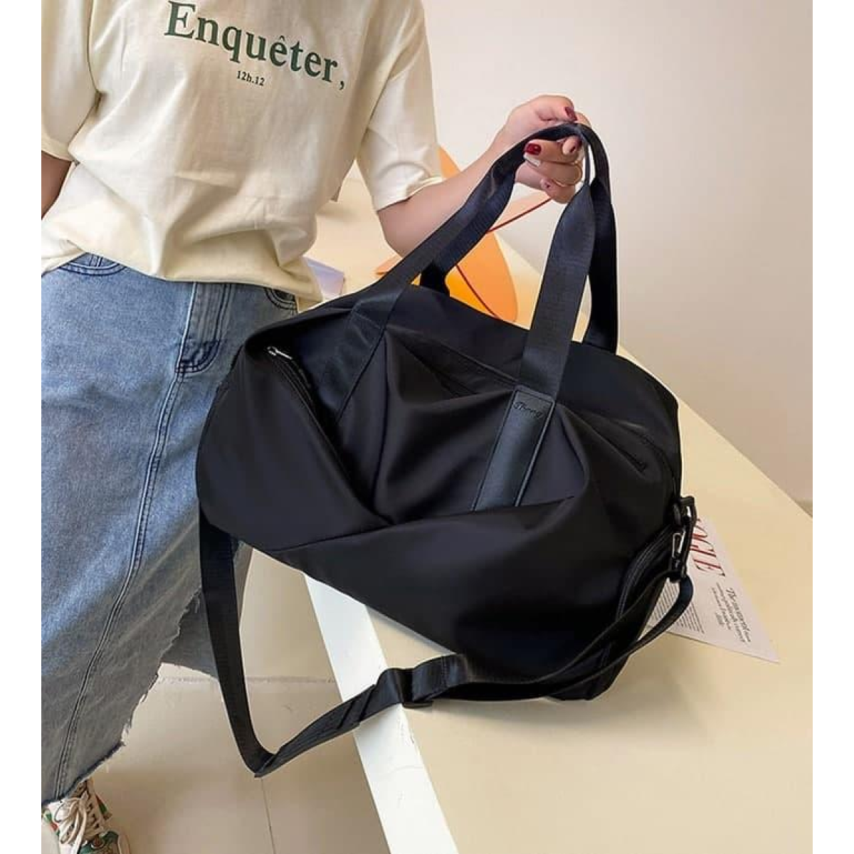 Спортивна жіноча сумка водовідштовхувальна на 4 кишені Чорна