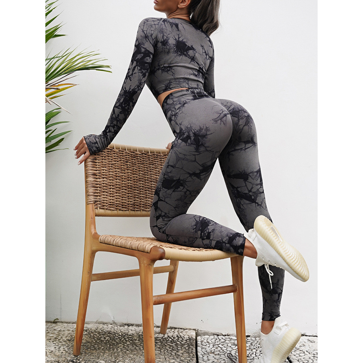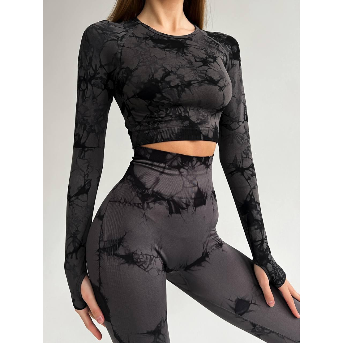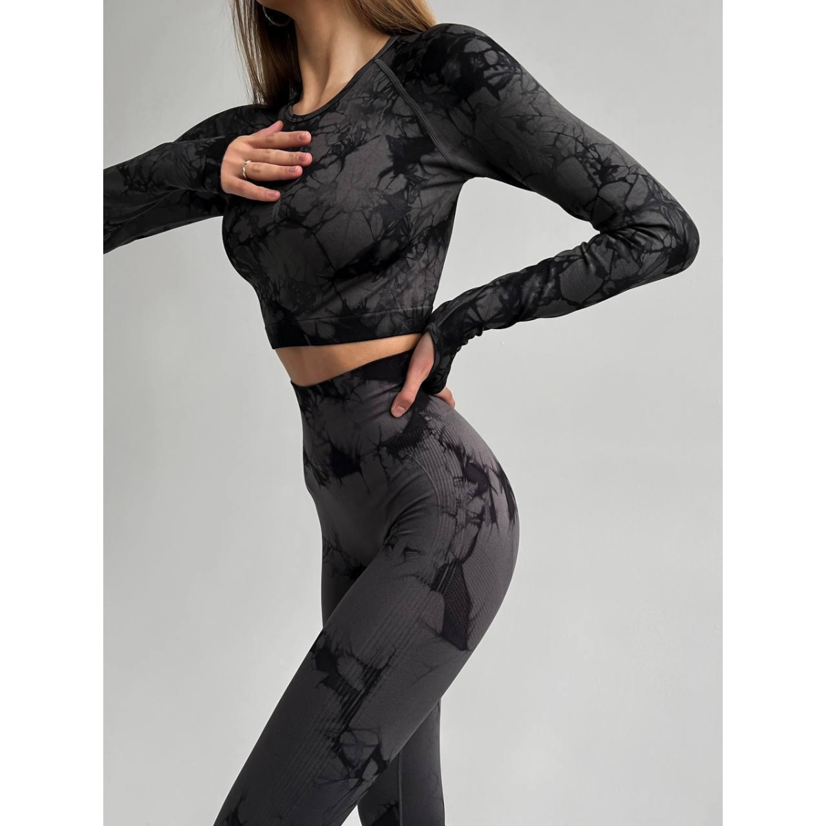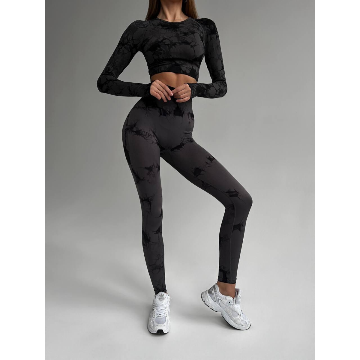 Топ з довгим рукавом і легінси мармуровий безшовний Push up комплект двійка