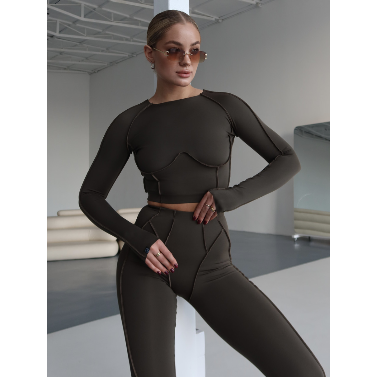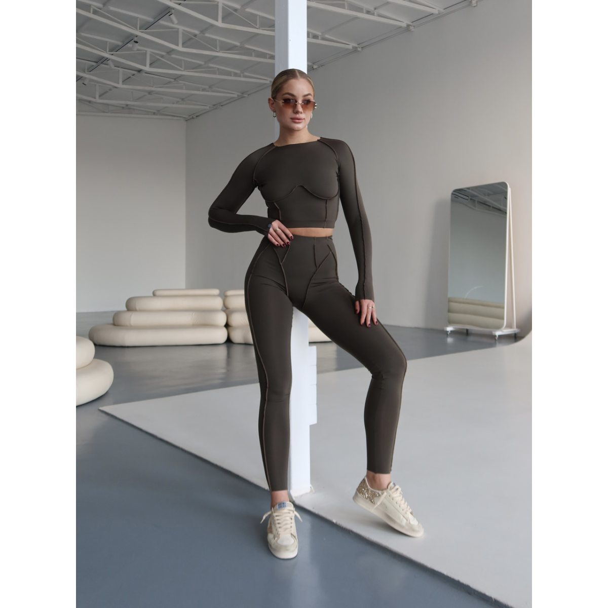 Комплект Лосини Рашгард із зовнішніми швами оливковий