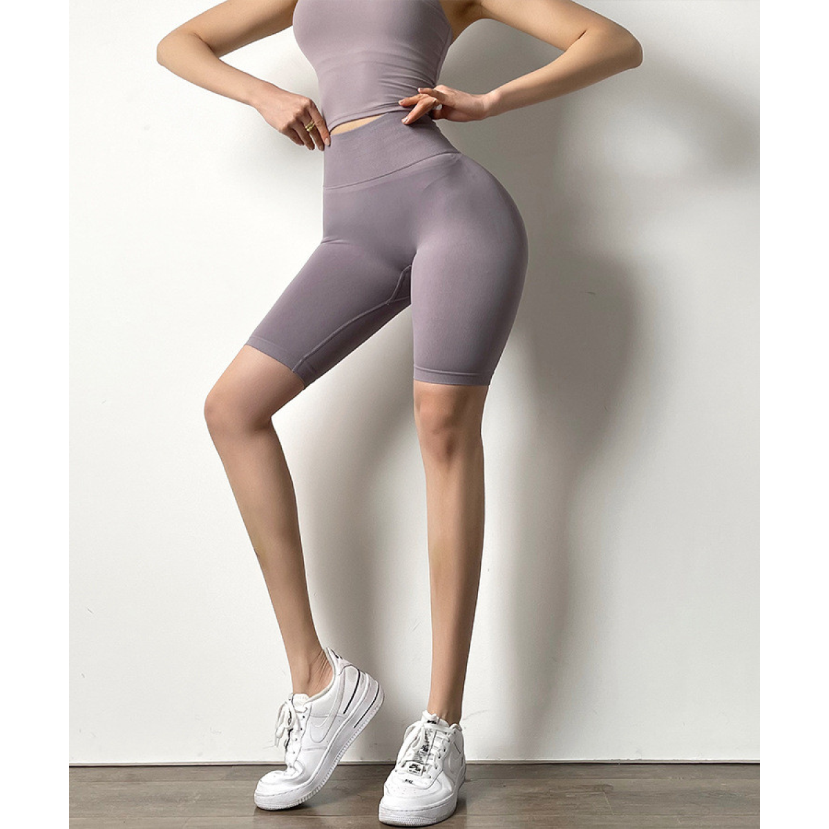 Базові велосипедки з ефектом Push-up у шести кольорах — універсальна річ, яка вписується і в спортзал, і в повсякденний стиль. Висока посадка підкреслює талію, щільна еластична тканина тримає форму, а силует виглядає підтягнутим і гармонійним.
