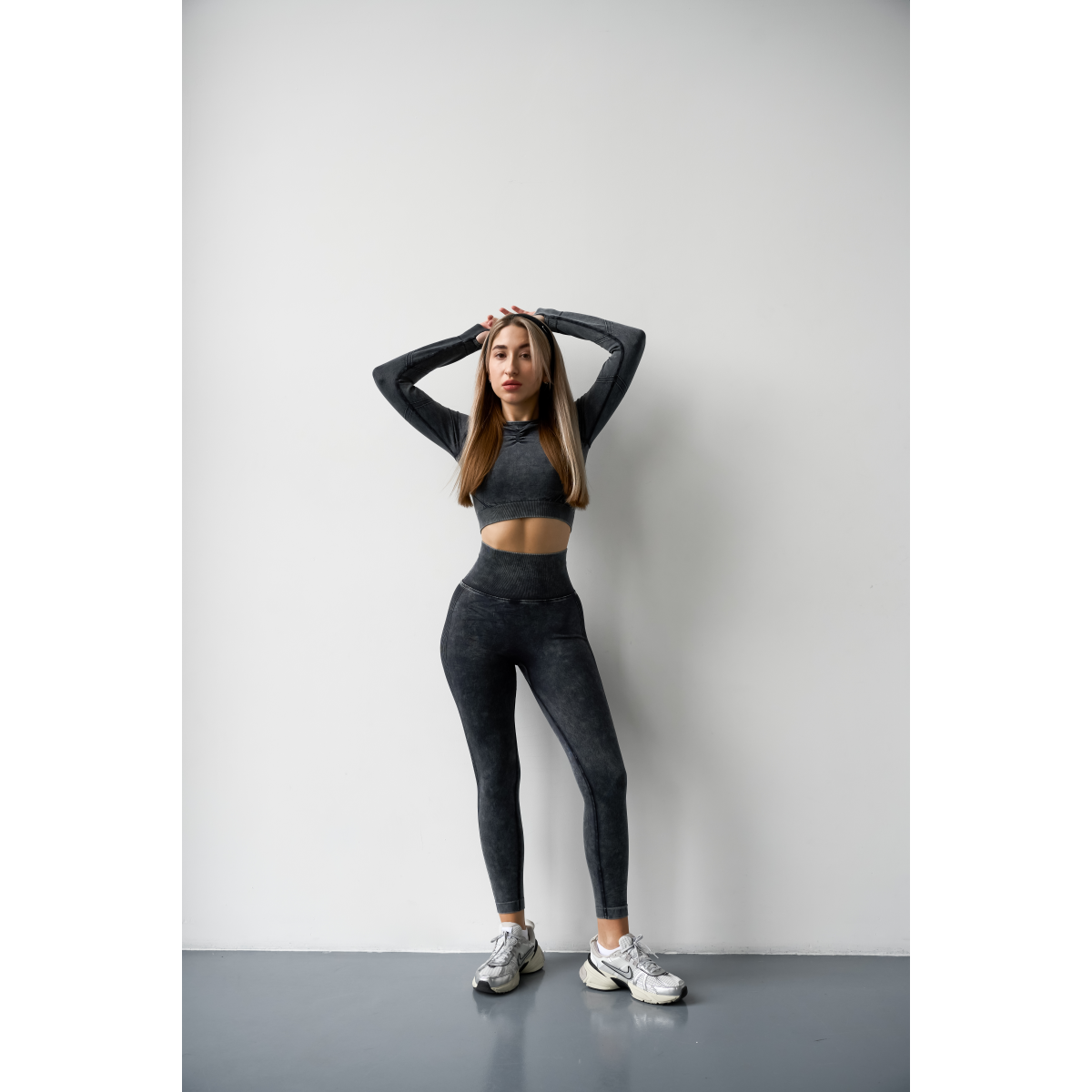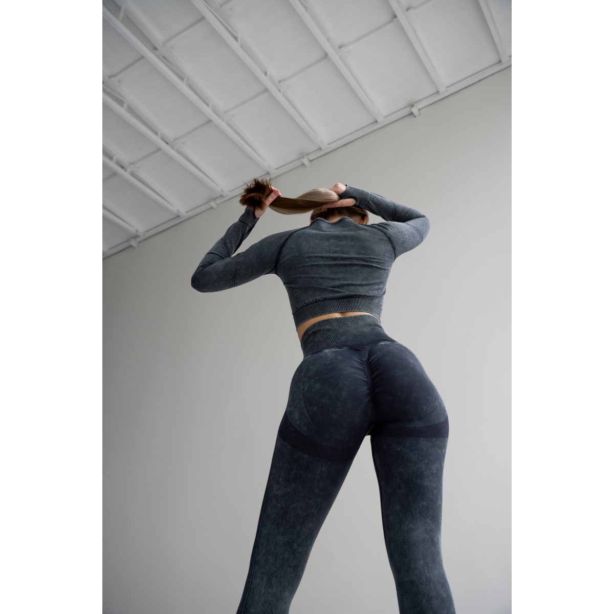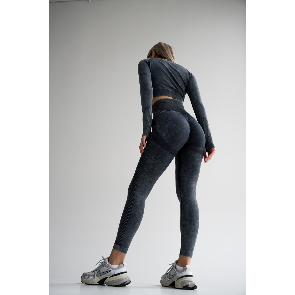 Безшовний Push up комплект двійка топ рашгард і легінси Tie Dye синьо чорний