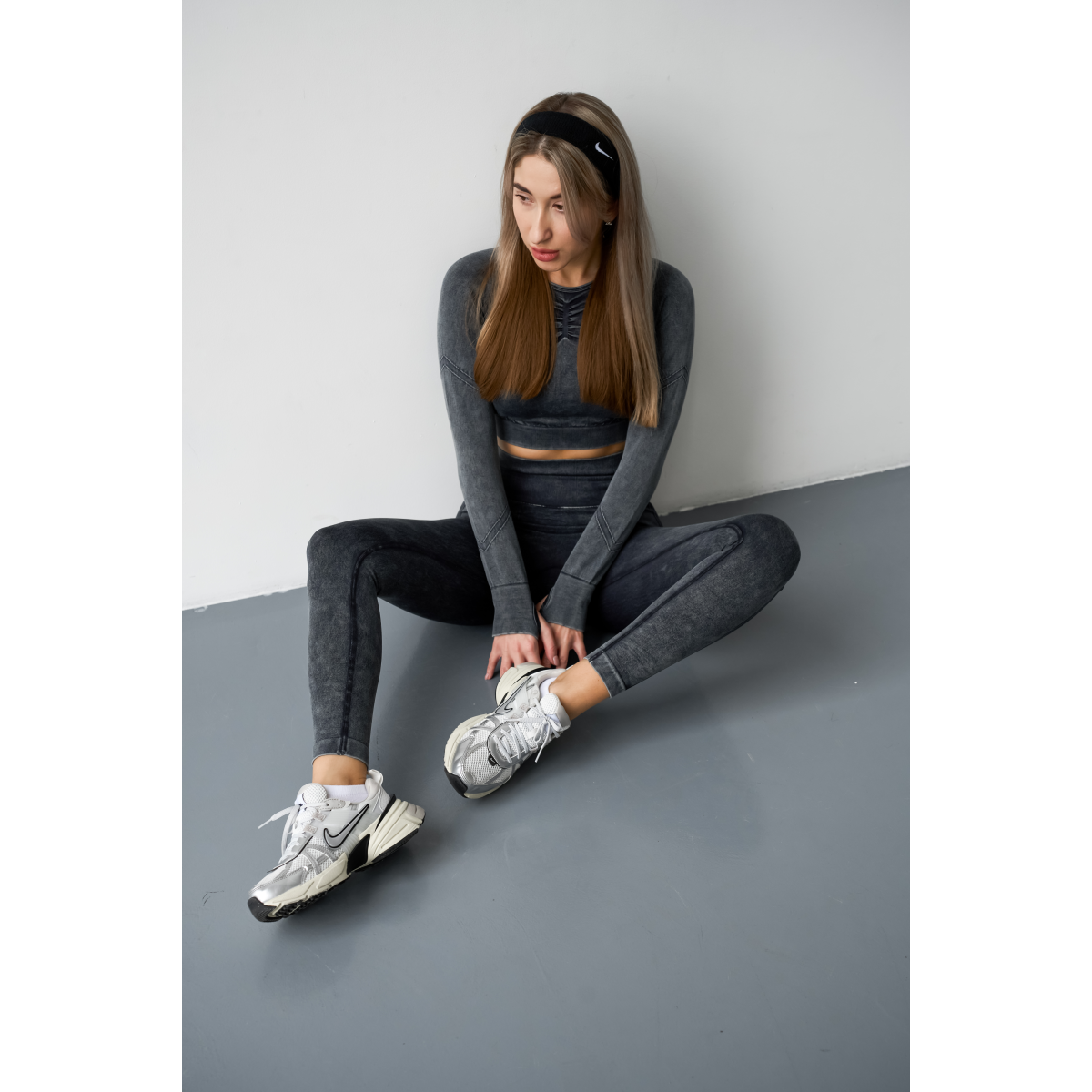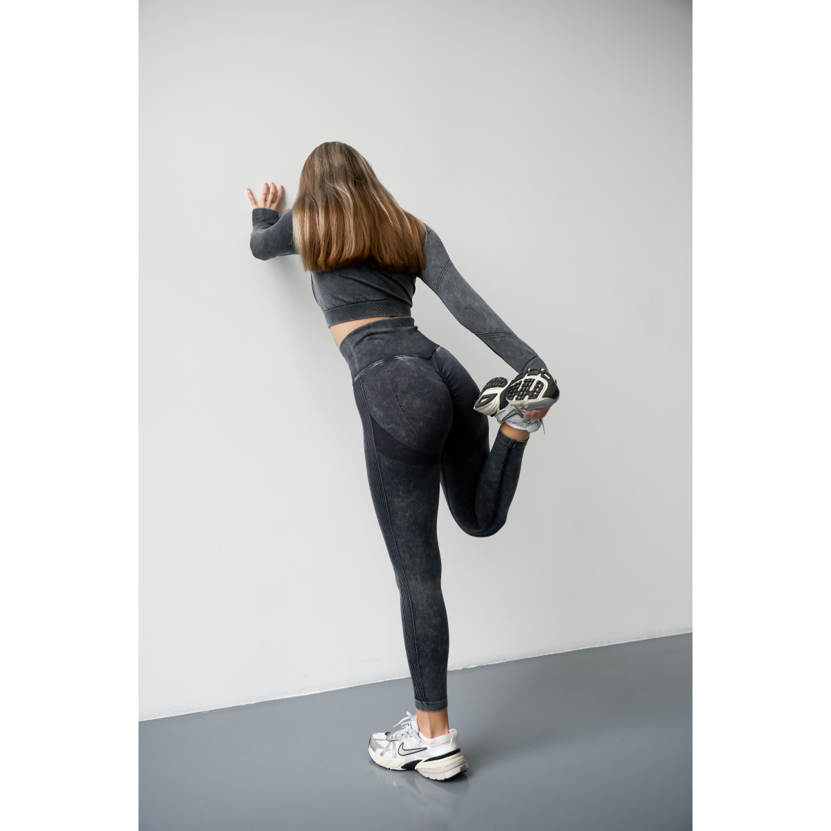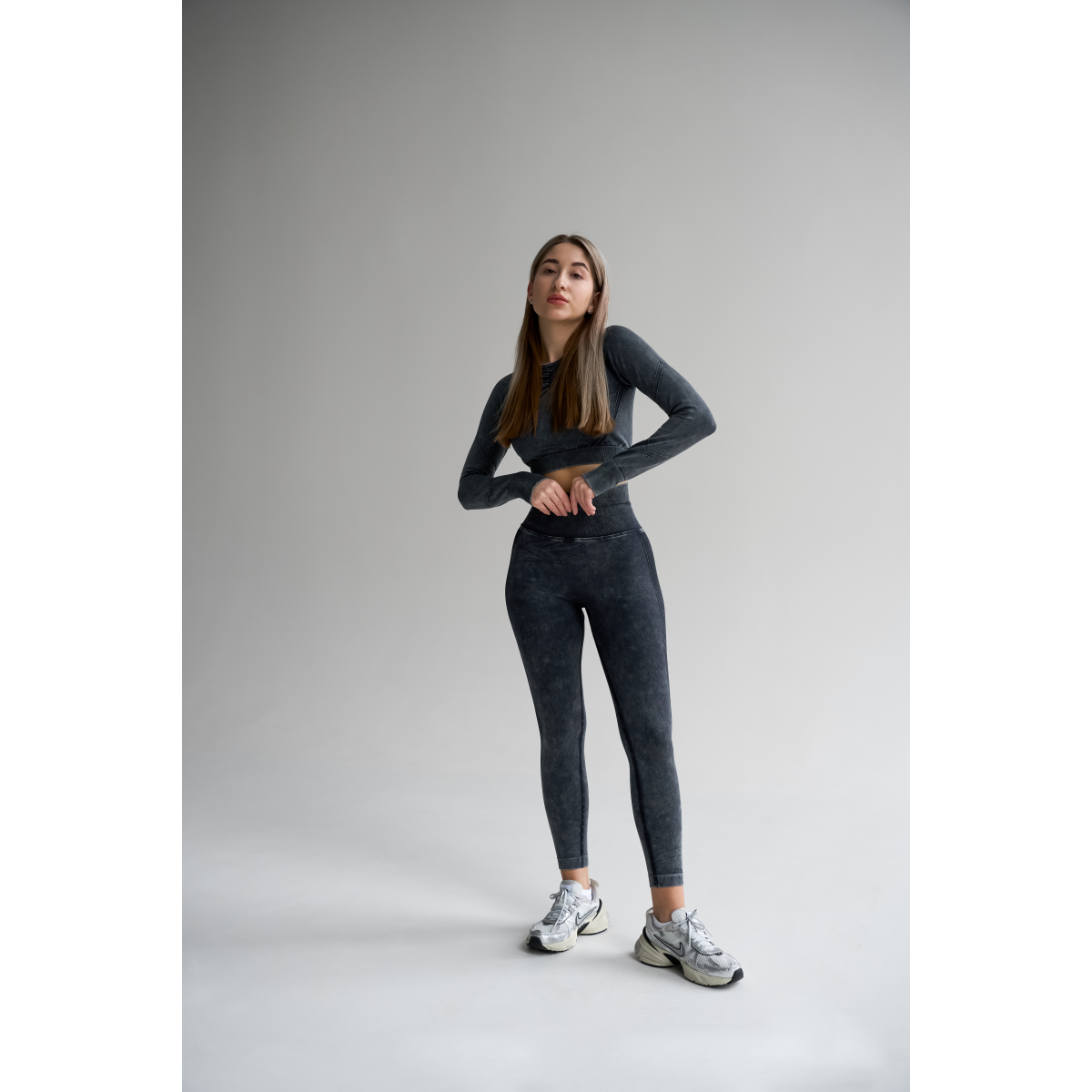 Безшовний Push up комплект двійка топ рашгард і легінси Tie Dye синьо чорний