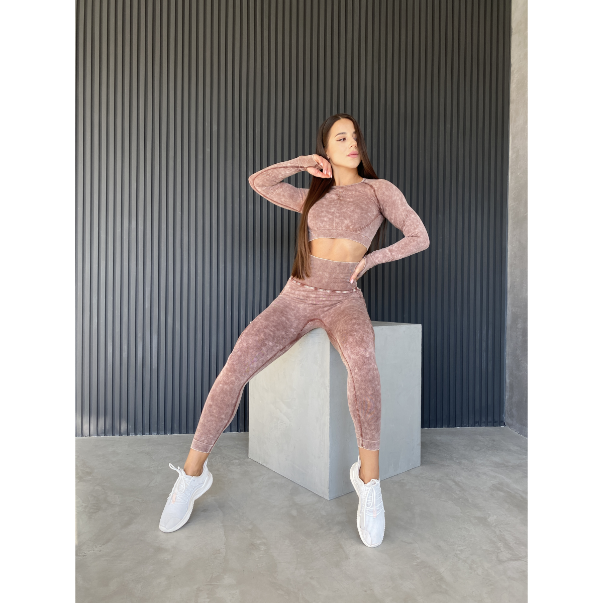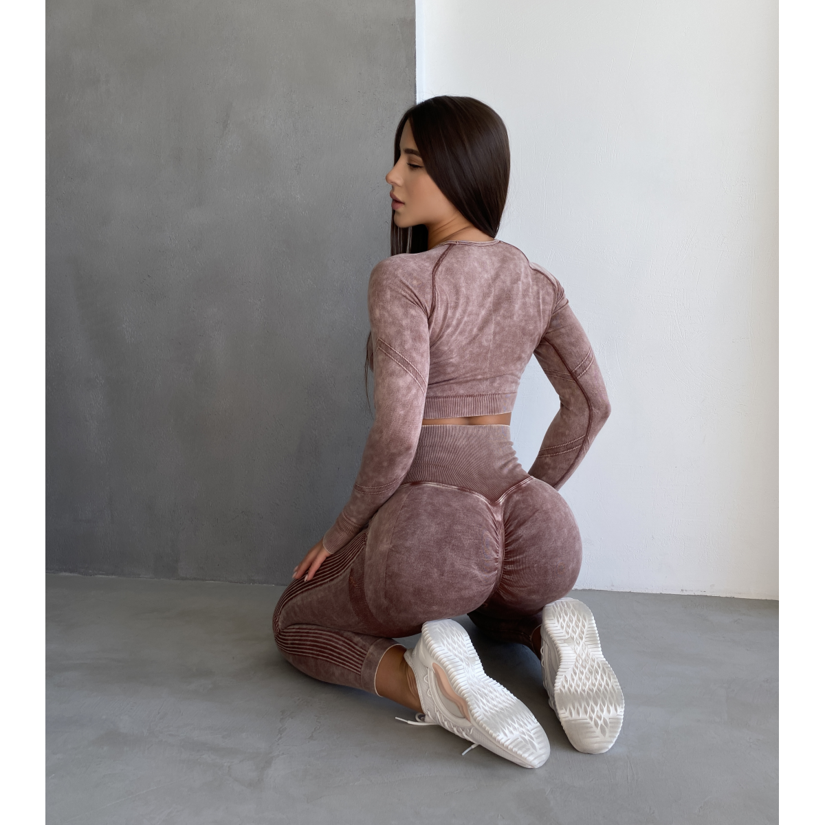 Безшовний Push up комплект двійка топ рашгард і легінси Tie Dye коричневий