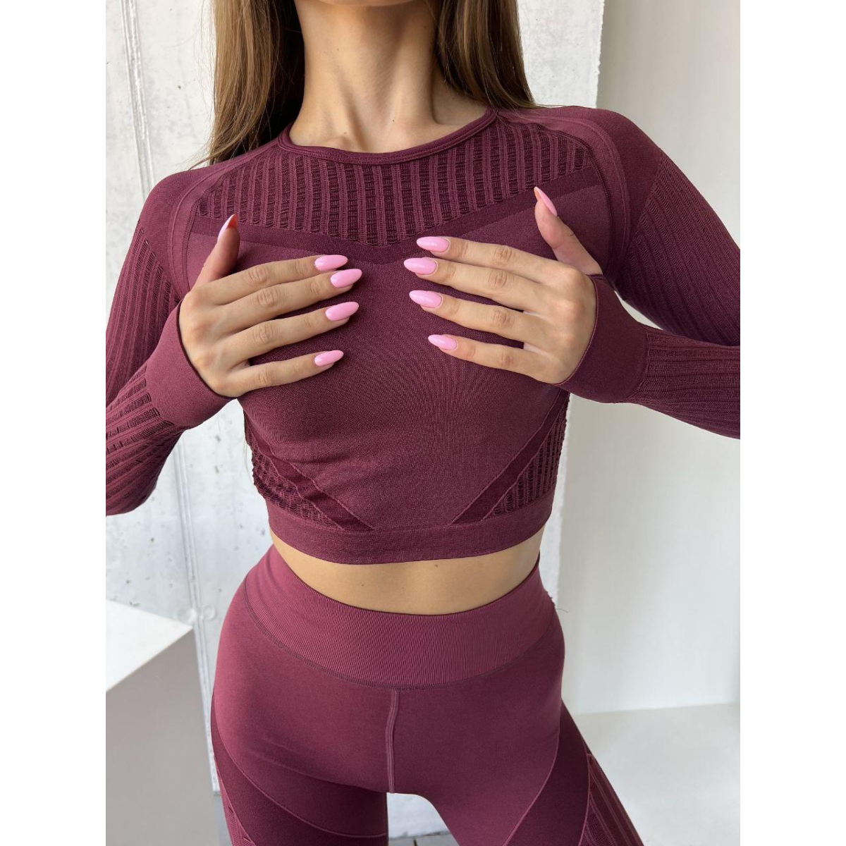 Комплект без Push up двійка топ лонгслів з довгим рукавом і легінси з стрілками бордовий