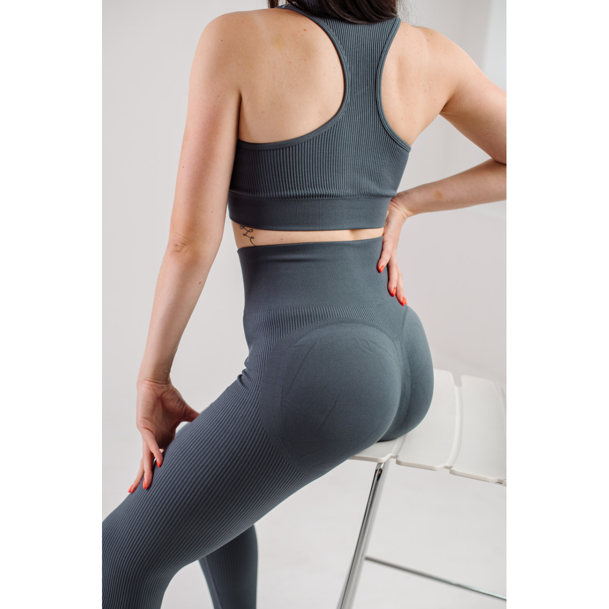 Push up комплект в рубчик топ бра і легінси лосини сірий