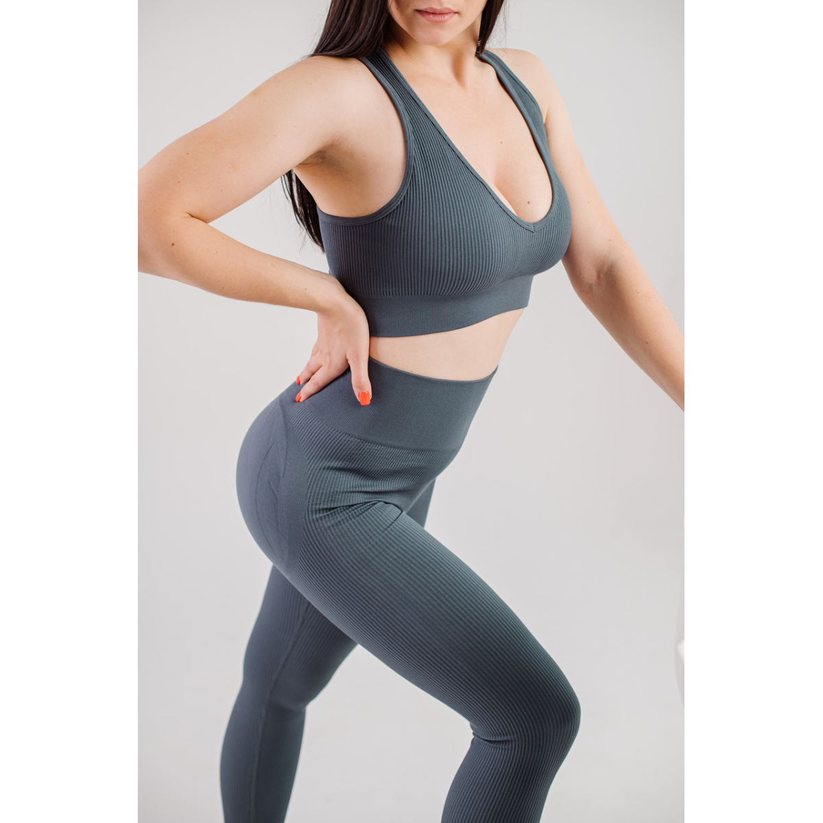 Безшовний комплект двійка спортивний легінси з мінімальним пуш ап і топ сірий