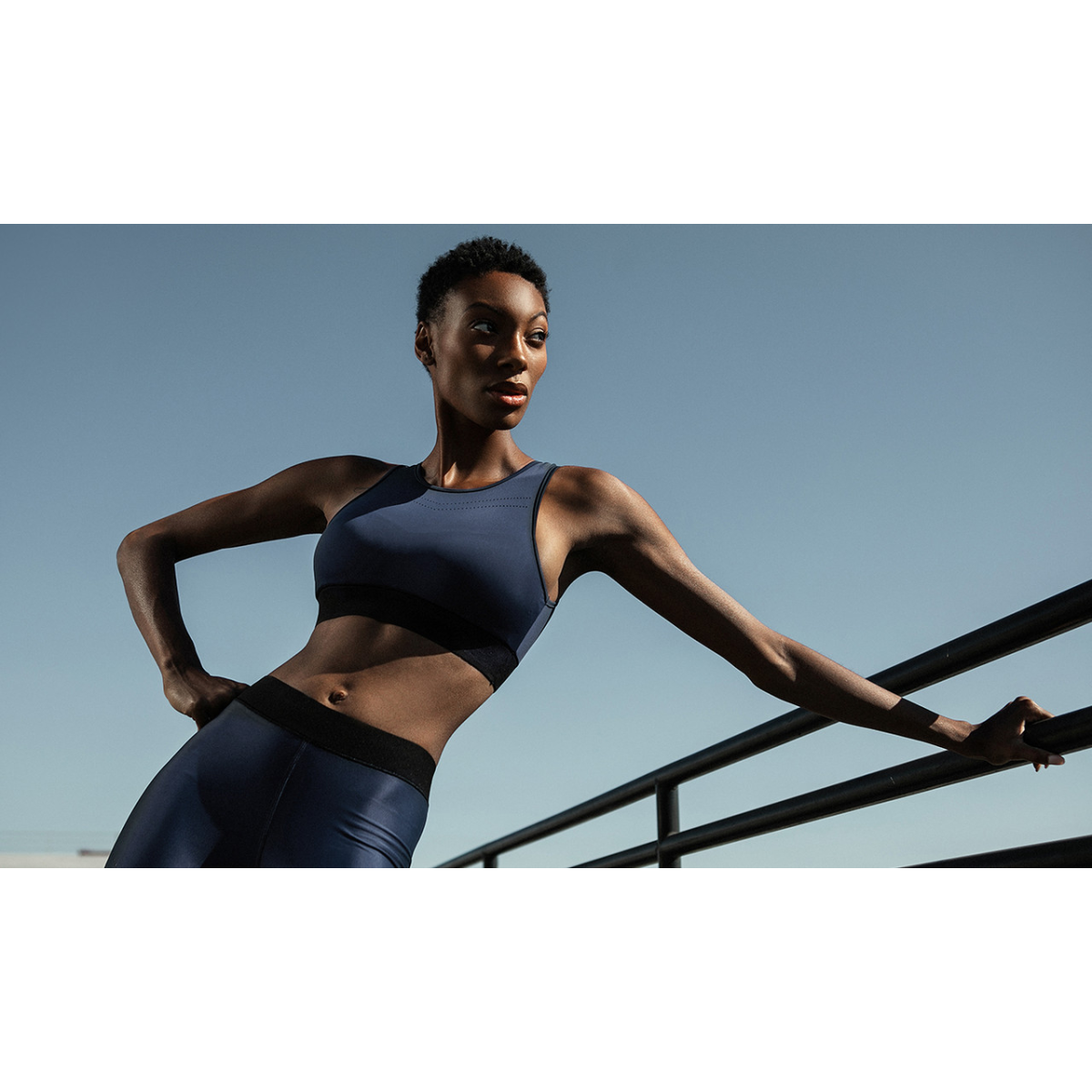 Топ Pixelation Navy карколомного синього кольору немає рівних. Тканина для нього створена з ниток Econyl (100% регенерированная нейлонова пряжа), так ми разом зробимо планету чистішою. Закритий дизайн, знімні чашки push up, широка гумка під грудьми з силіконом на внутрішній стороні для додаткової фіксації. Топ з геометричним малюнком, зробленим за допомогою технології перфорірованія, яку ми використовували вперше для цієї колекції. Що ще говорити — Pixelation Navy неймовірний. Як і ти.