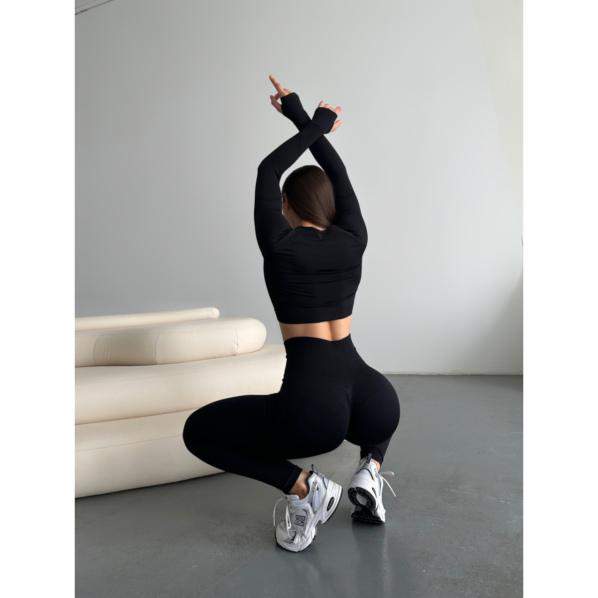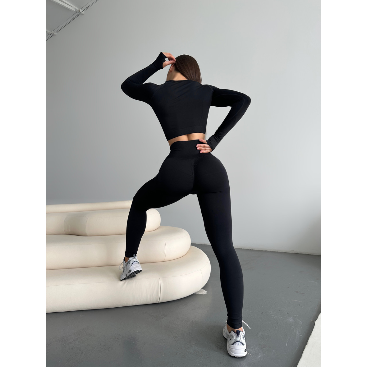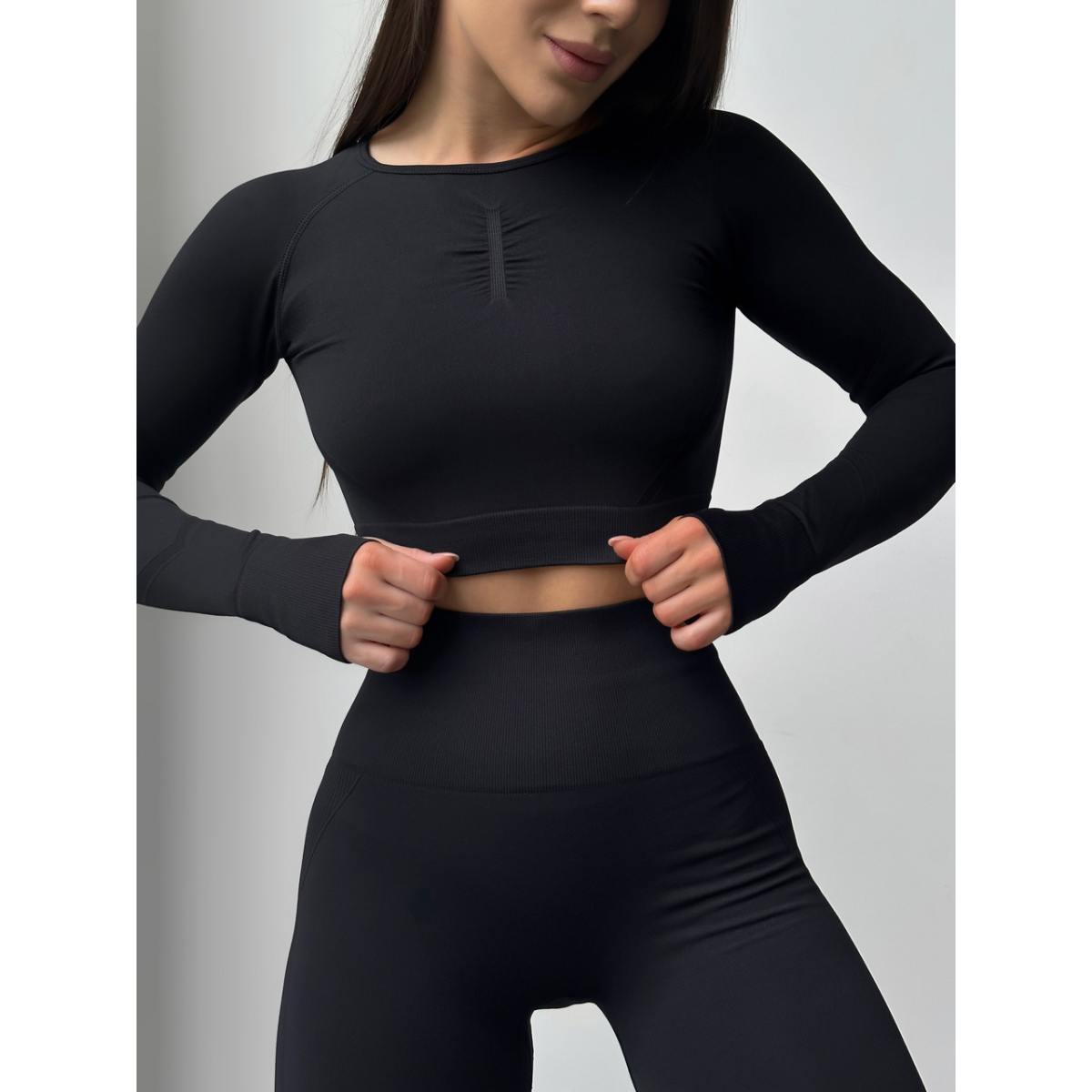 Рашгард і легінси Безшовний Push up комплект двійка чорний топ лонгслів і лосини Oxis