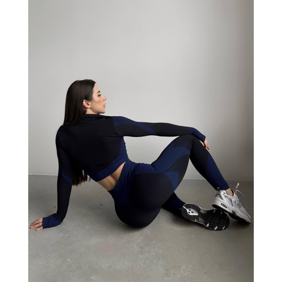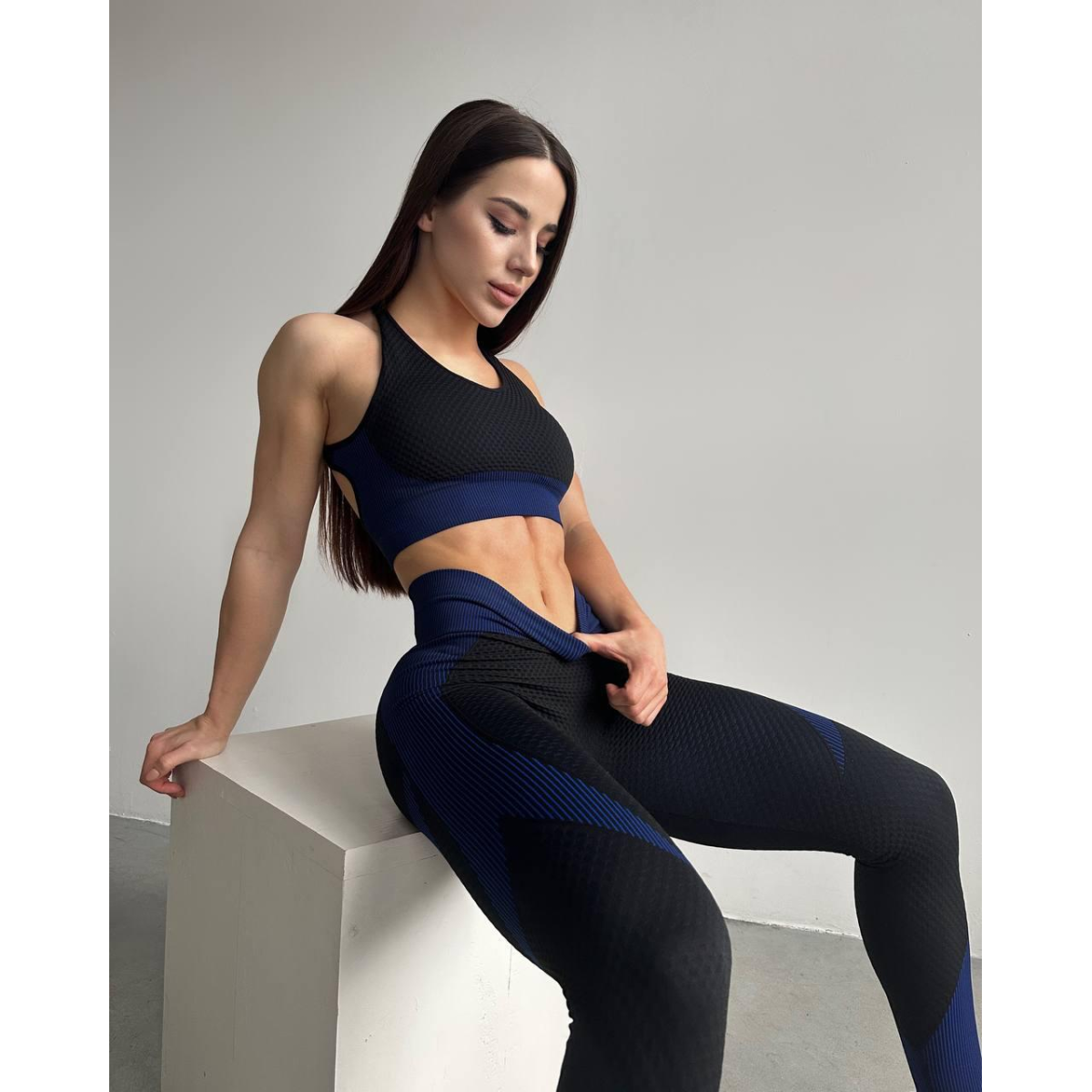 Спортивні лосини жіночі фактурні подвійний колір чорні з синім