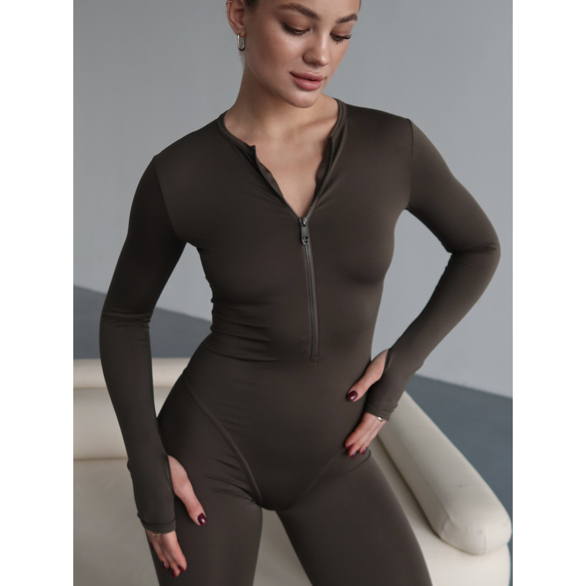Жіночий спортивний комбінезон з довгим рукавом Easy оливковий