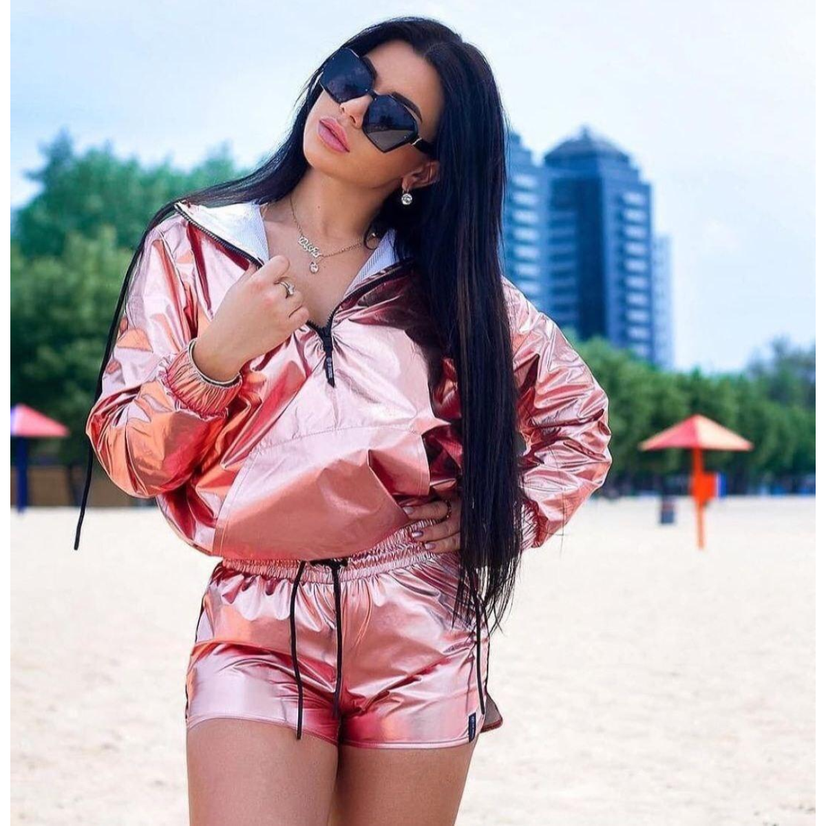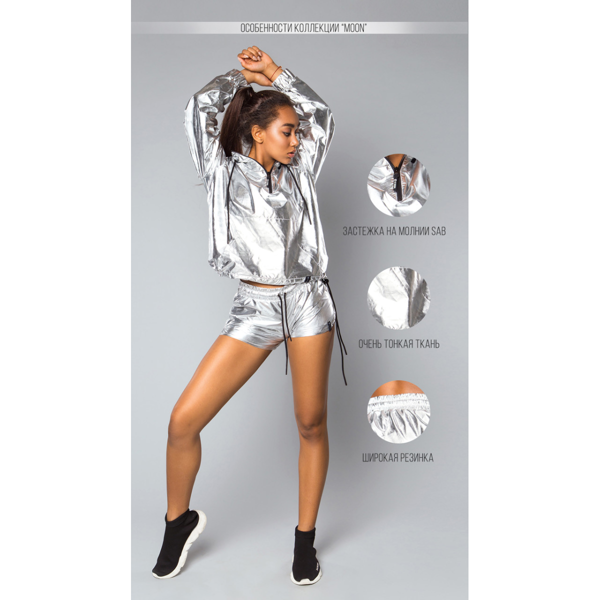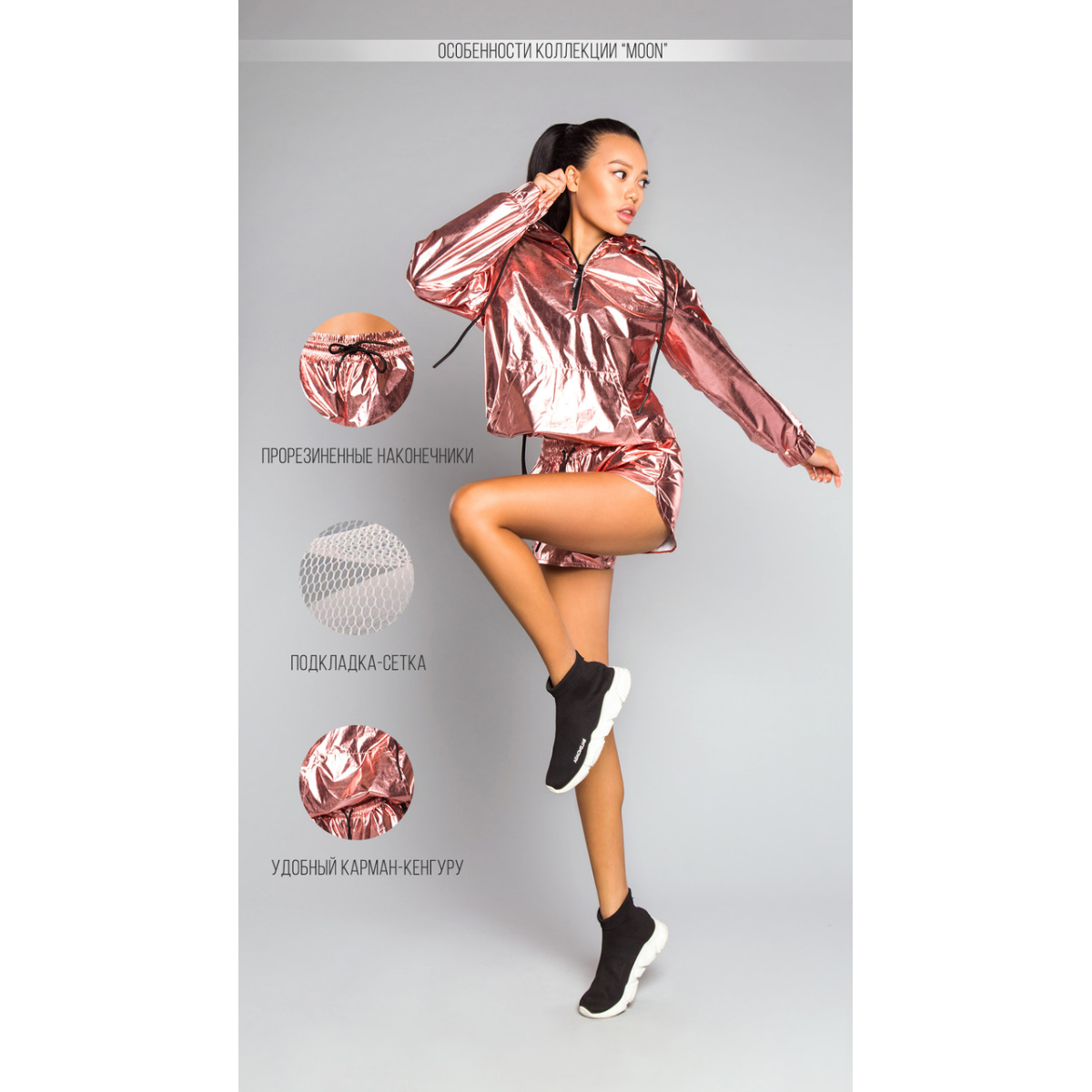 Космічні шорти MOON Gold Rose. Мають широку резинку на поясі, додаткова фіксація завдяки шнуркам. Вільний крій дає змогу почуватися комфортно в будь-якому виді активності та не обмежує рухів. Ідеально поєднується із вітровкою MOON Gold Rose.