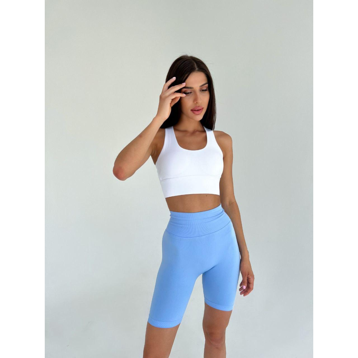 Велосипедки з ефектом Push up у базовому ніжному блакитному кольорі .