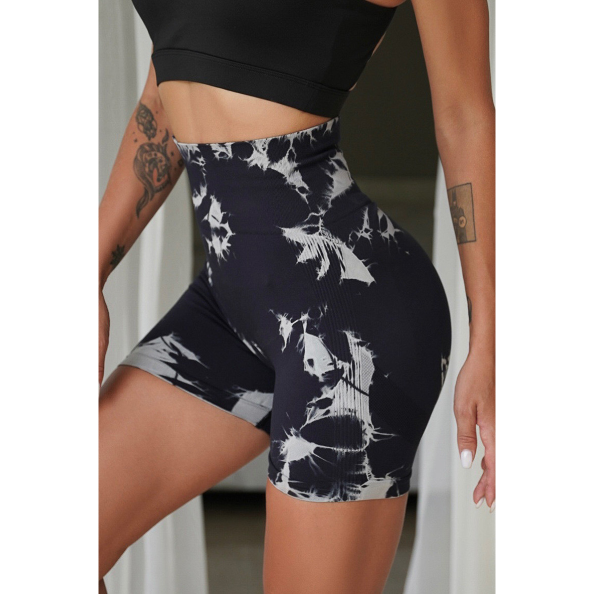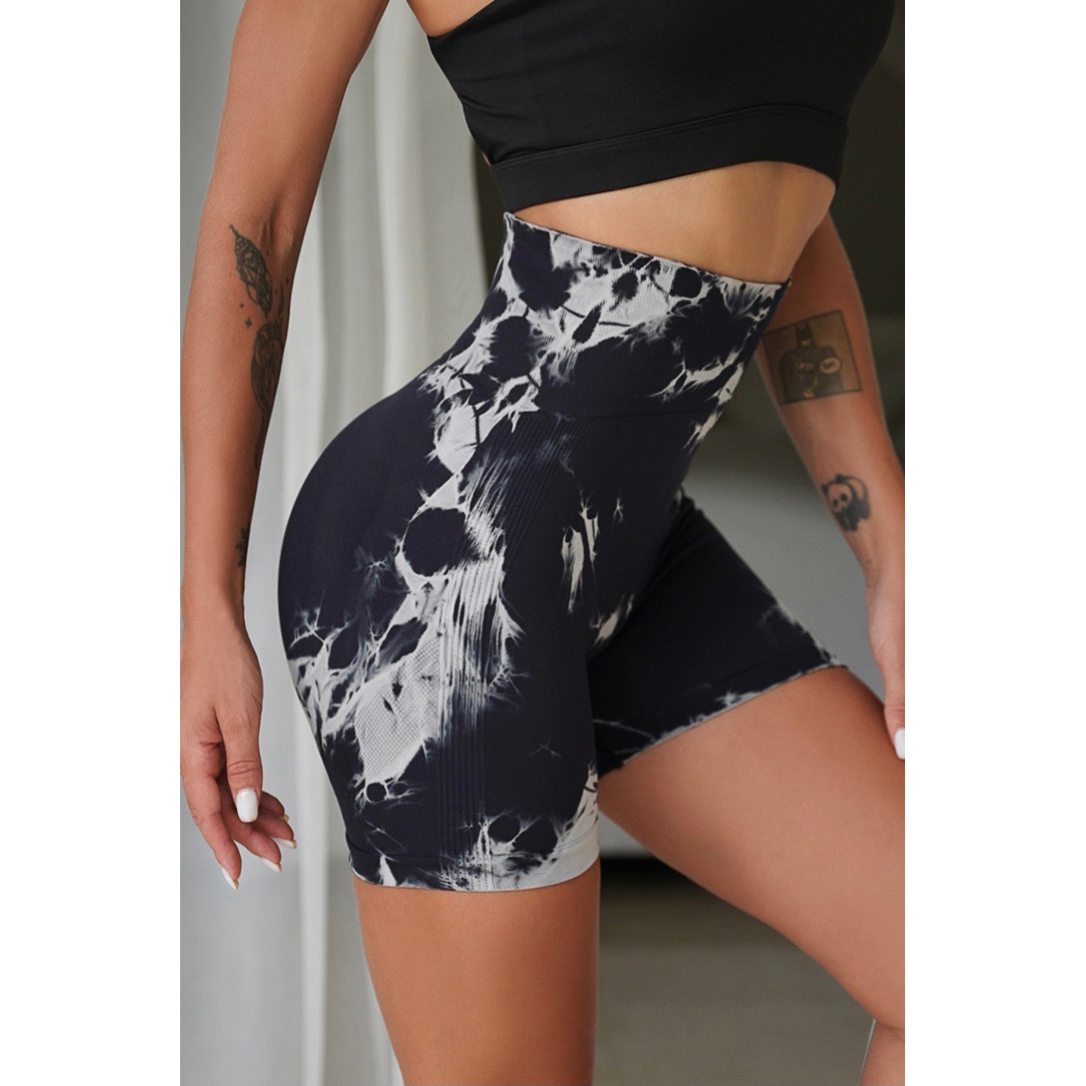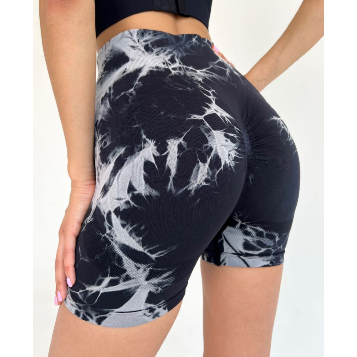 Жіночі мармурові велосипедки Push Up безшовні Чорний/білий