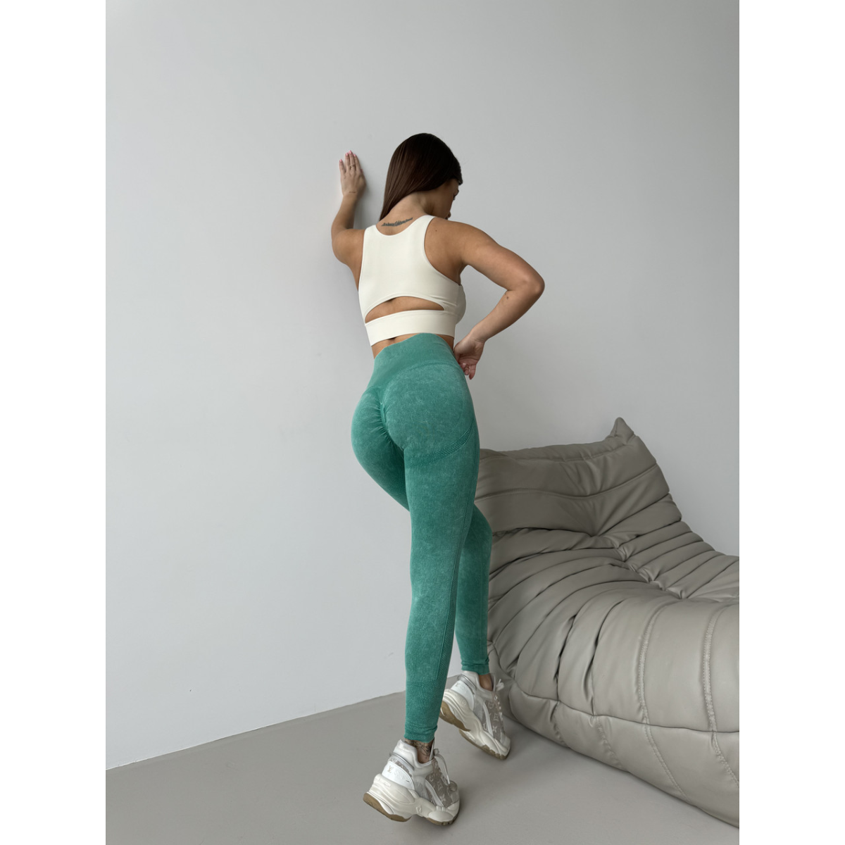 Спортивні легінси з перфорацією з подвійним Push up та V-подібним швом виварений колір зелені
