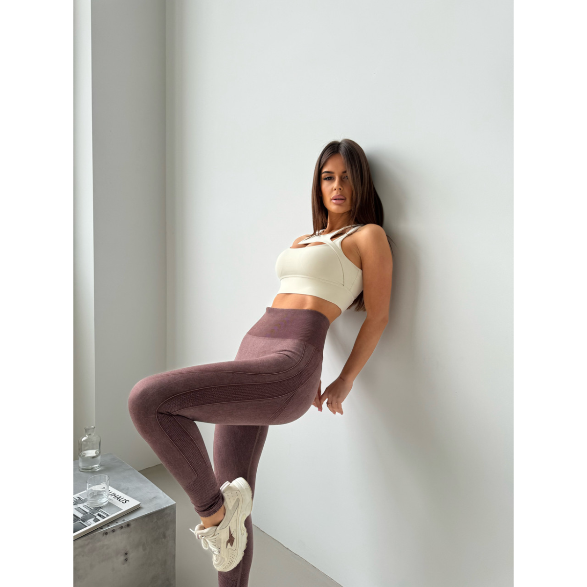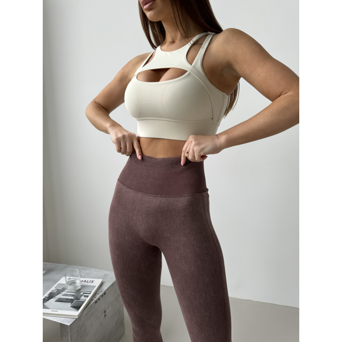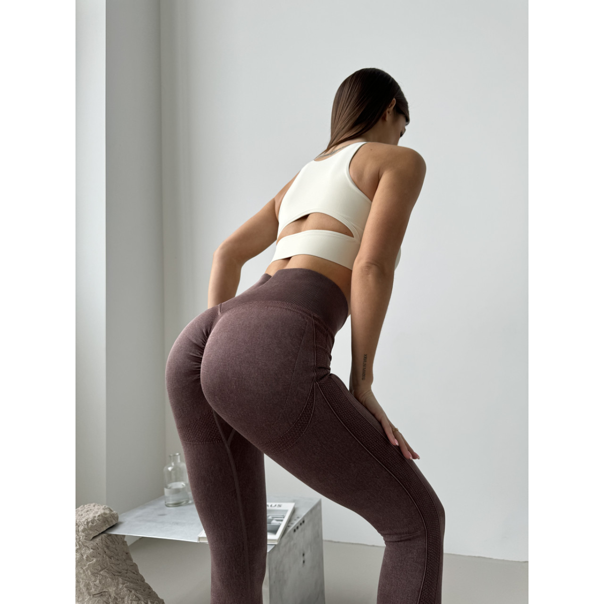 Спортивні легінси з перфорацією з подвійним Push up та V-подібним швом виварений колір коричневі