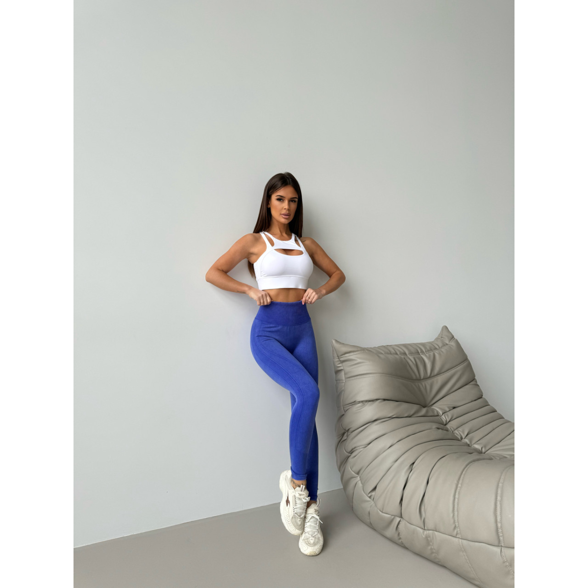 Трендова виварена тканина в 10 кольорах. Перфорація для кращої вентиляції під час активностей вздовж всієї ніжки подовжує силует. Подвійний Push up візуально додає об єму, а V-подібний шов робить округлу форму сідничок від самого верху. Комфортна до тіла, м'яка еластична тканина, але при цьому чудово підтягує.