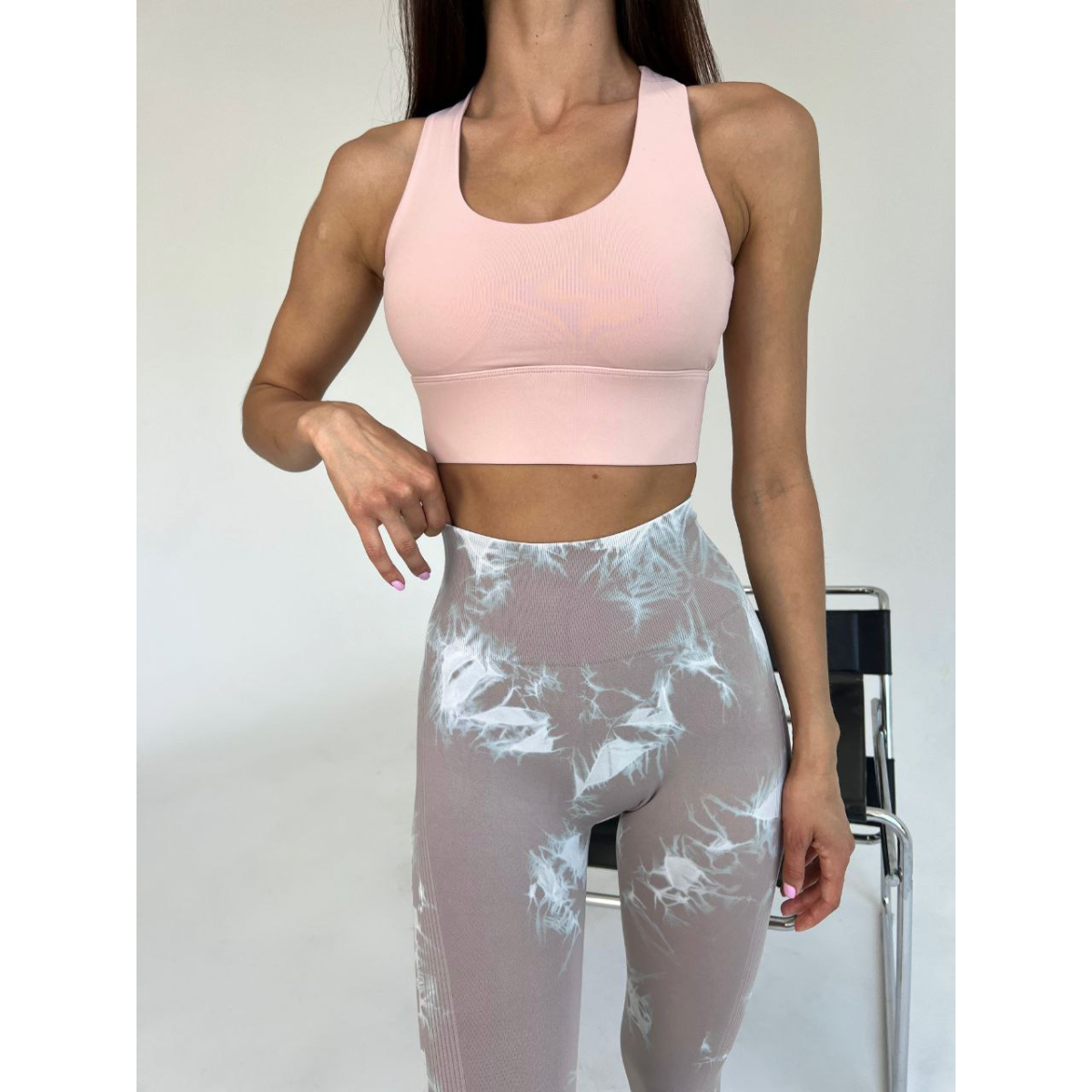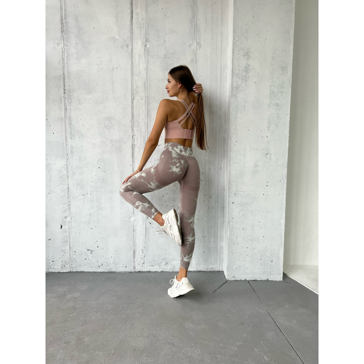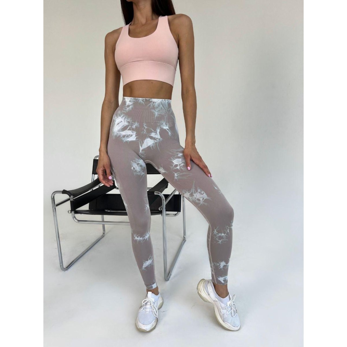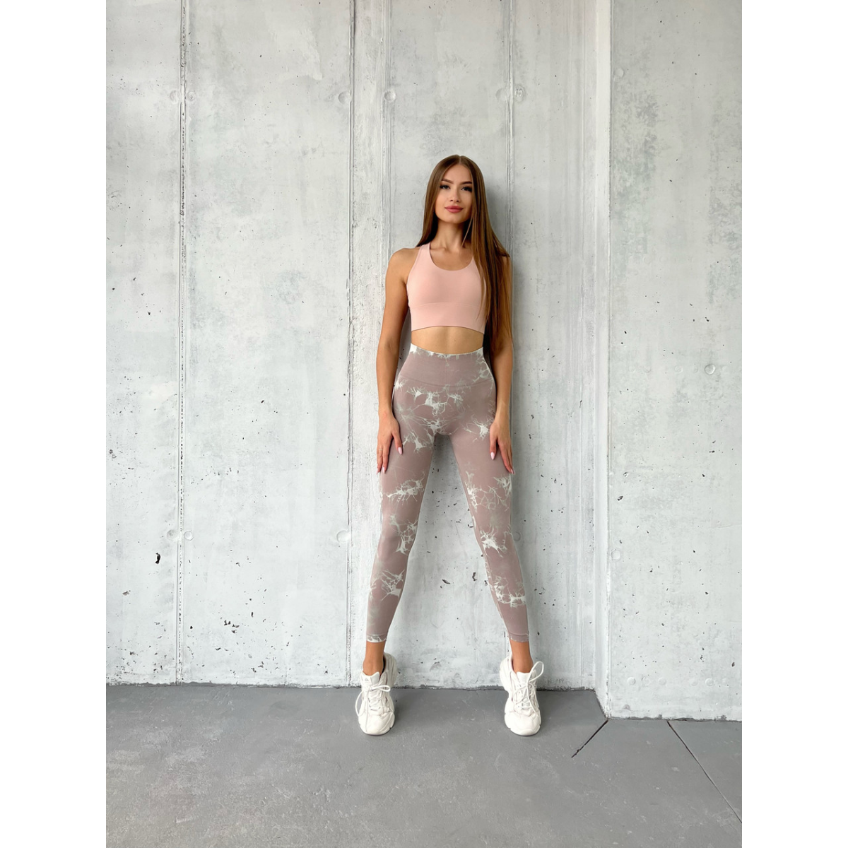Спортивні легінси пушап жіночі мармурові димок бежеві з білим