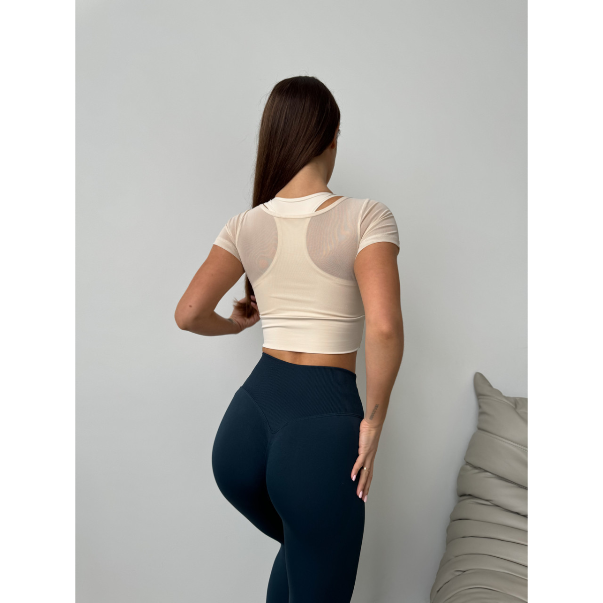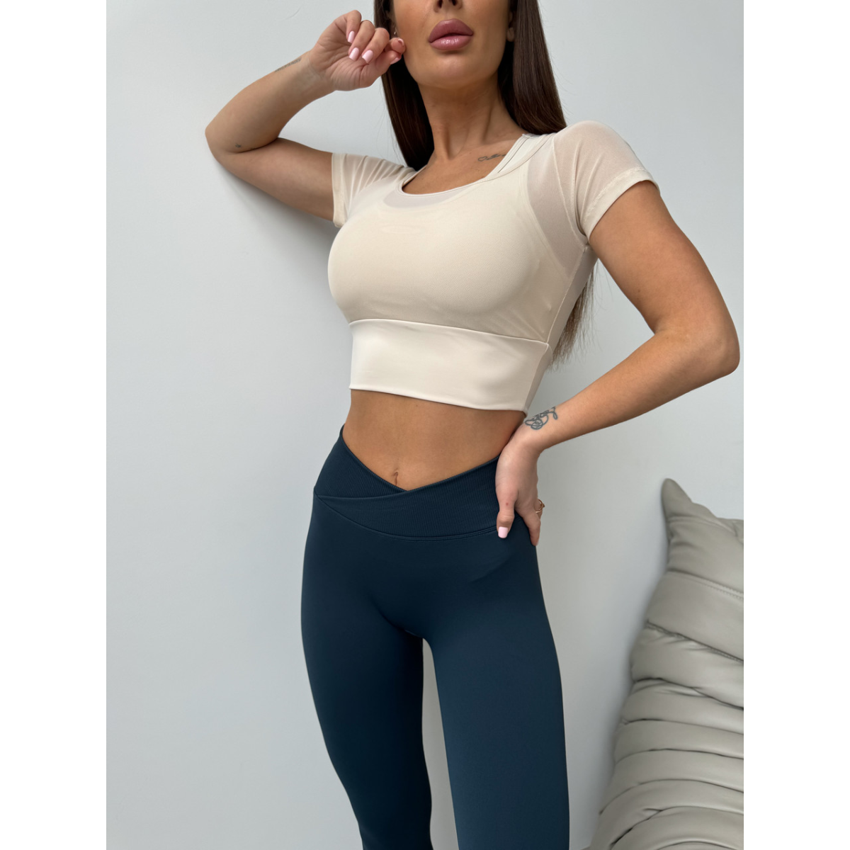 Кроп топ подовжений із вшитою футболкою-сіткою, супер цікава, зручна модель топа.