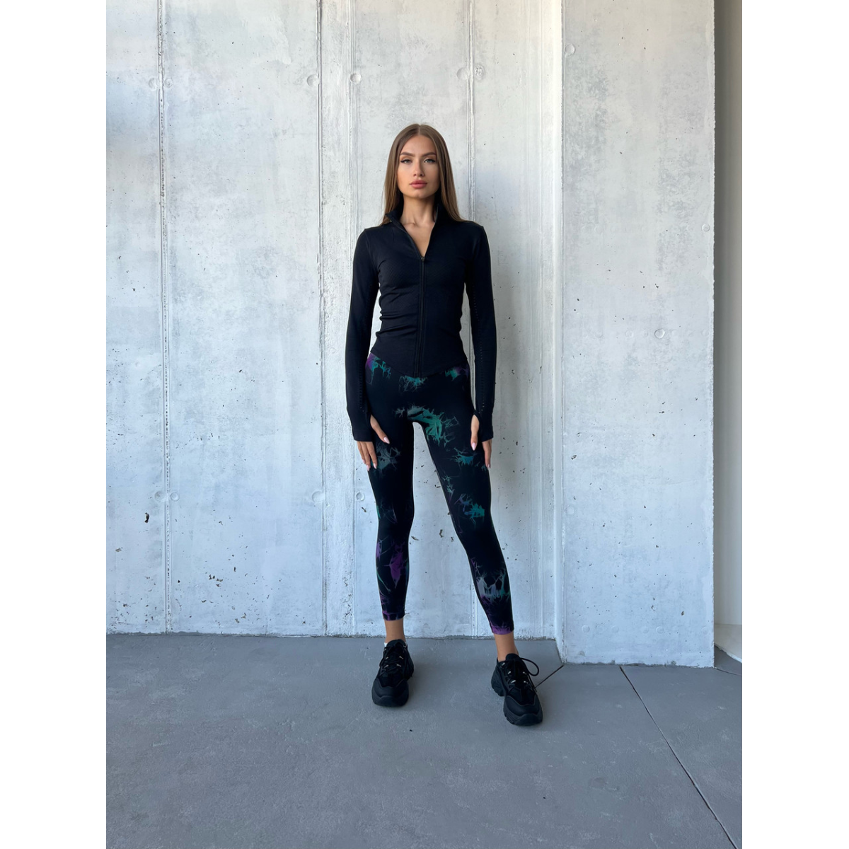 Базовий чорний рашгард на блискавці з прорізами для пальців