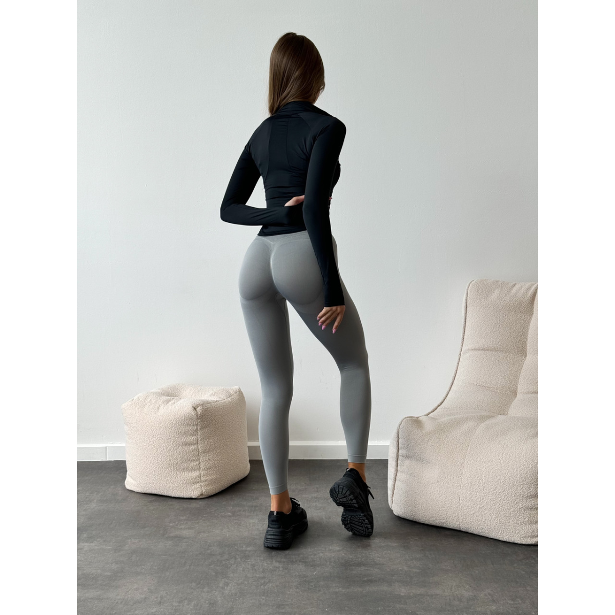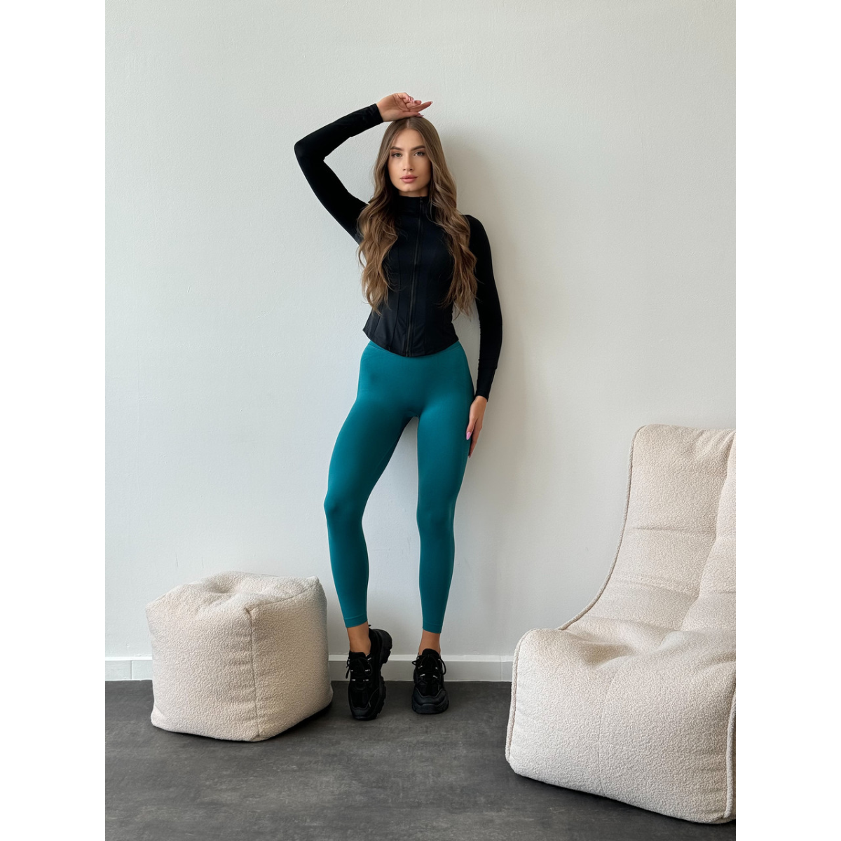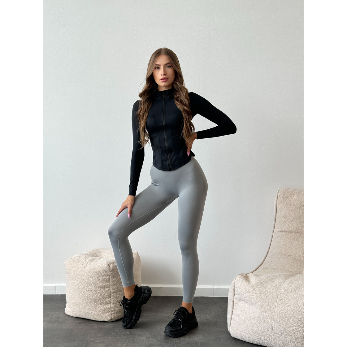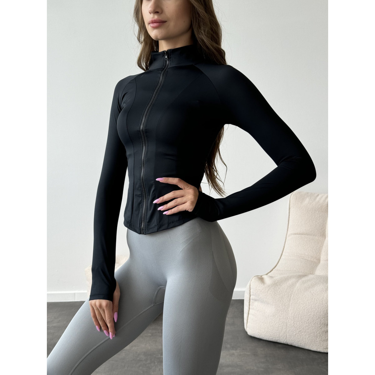Базовий чорний рашгард на блискавці з прорізами для пальців з коміром